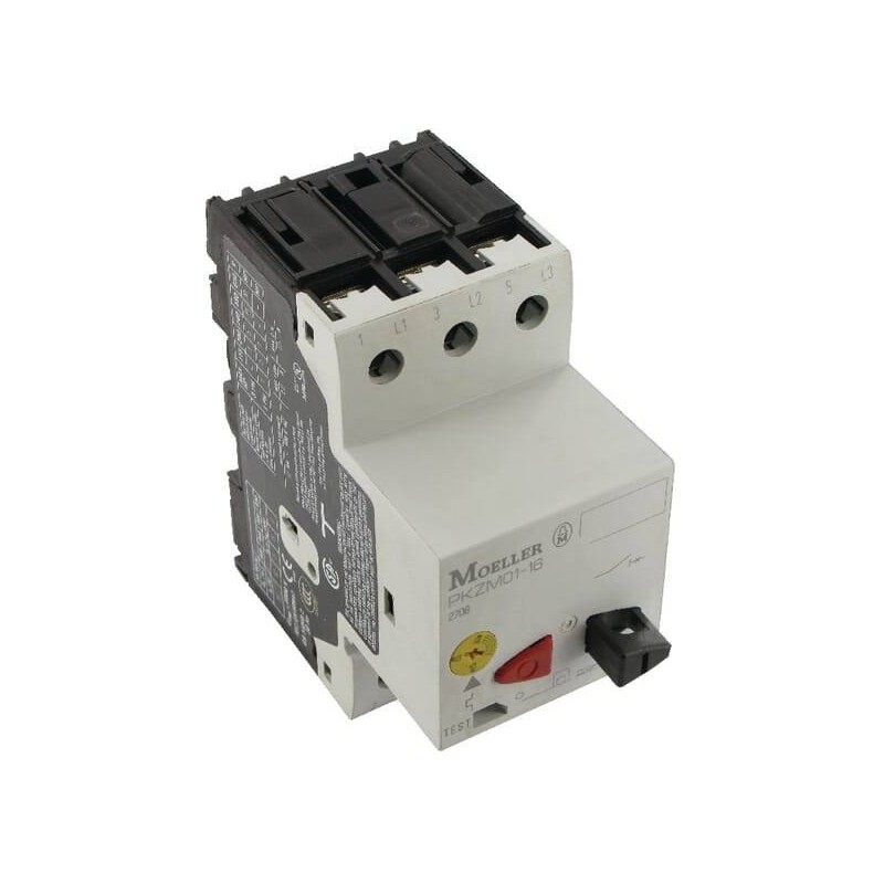Informations techniques : Disjoncteurs moteurs PKZM pour des courants assignés jusqu'à 63A, et un pouvoir de coupure de 50kA. Seulement deux disjoncteurs PKZM 0 et PKZM 4 pour couvrir la plage de courant de 0,1 à 63A permettant une étude et un stockage facile. La poignée rotative de ces disjoncteurs permet une signalisation très visible de l'état O/F ou de déclenchement sur défaut de l'appareil. Il est possible de monter des contacts auxiliaires latéraux ou sur l'avant pour diminuer l'encombrement. Nouveautés: Le PKZM01 à bouton poussoir jusqu'à 16A est idéal pour la protection des moteurs des petites machines. Il est possible de faire un arrêt d'urgence simple et économique en commande directe sur le disjoncteur. De plus ce disjoncteur est compatible avec la quasi-totalitéé des auxiliaires de PKZM0 et PKZM4
