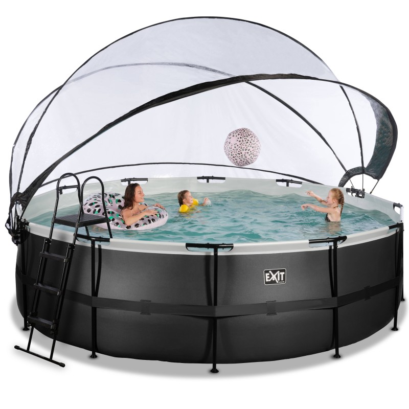 EXIT Piscine couverte Black Leather ø488x122cm avec pompe filtrante à sable et à chaleur - noir